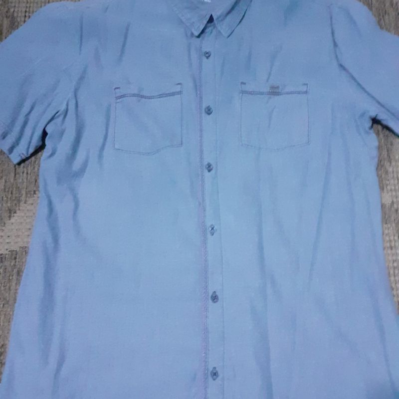 Camisa Jeans Azul M dio Bolsos Masculina