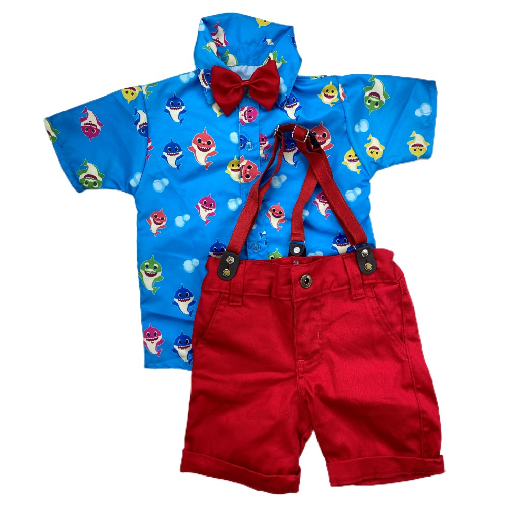 ROUPA BABY SHARK conjunto completo tema festa menino Camisa