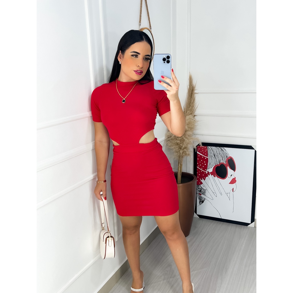Vestido longo com fenda decote na cintura FF Moda Festa