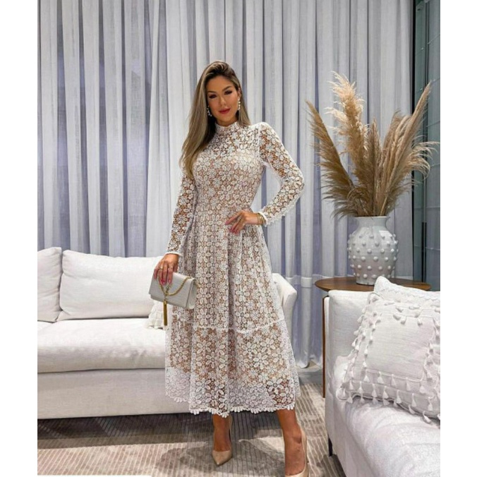 Vestido Nude MIDI Casamento civil GUIPIR Shopee Brasil