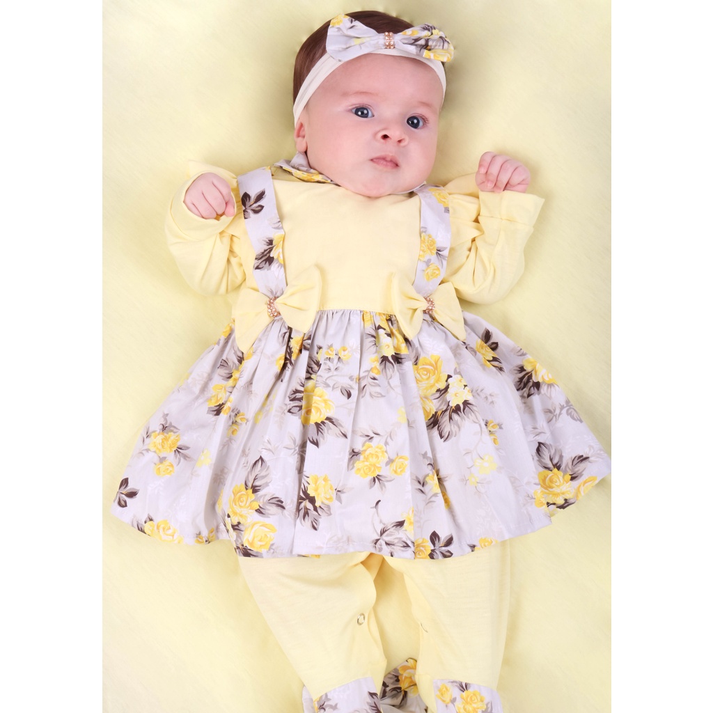 Saida de Maternidade Para Bebe Menina Rosa Charme Floral 04 pe as Amarelo Roupas Para Beb