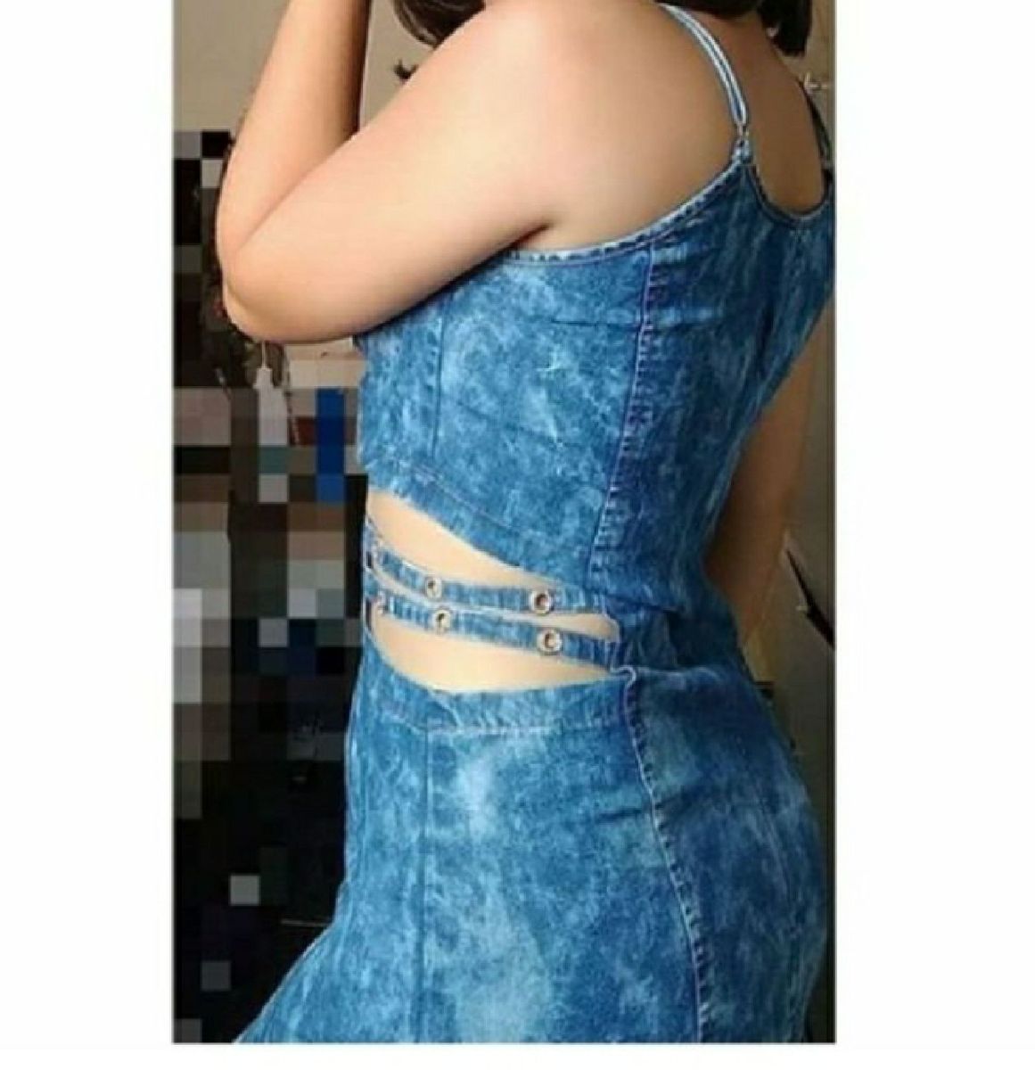vestido alcinha aberto lateral jeans feminino Portal Parque dos