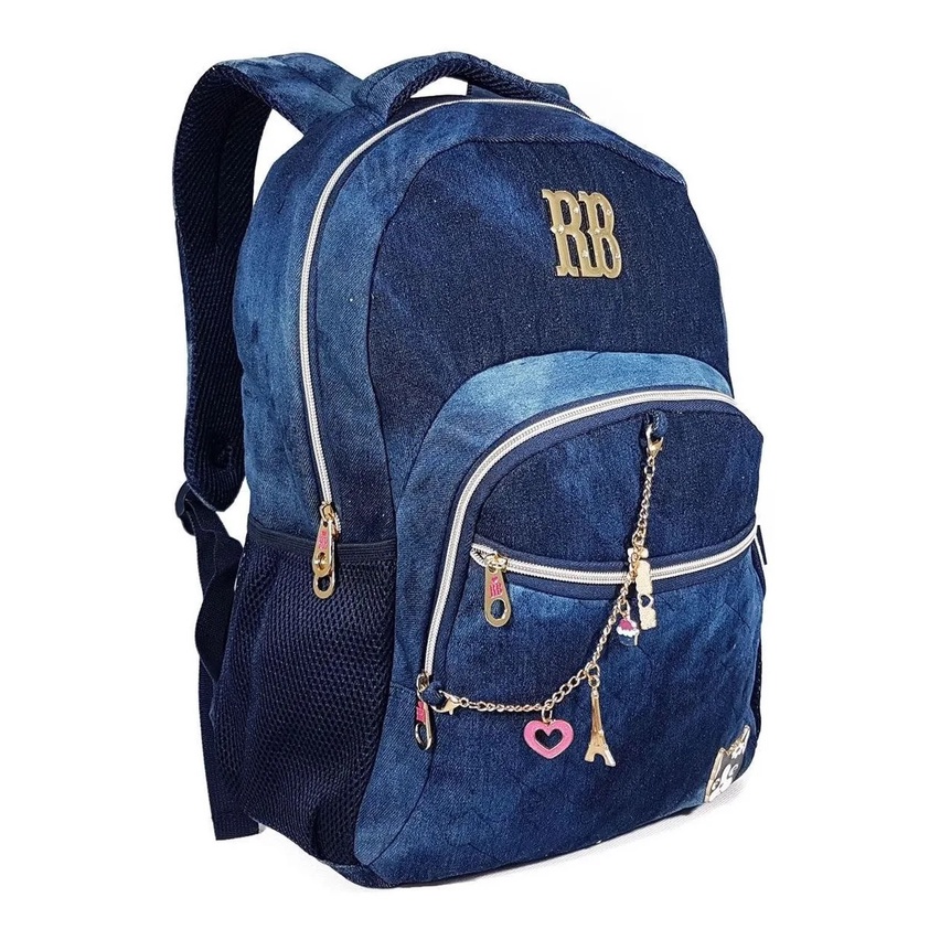 Mochila clearance jeans rb, Kit Mochila RB Rebecca Bonbon Escolar Jeans Feminina com Estojo clearance