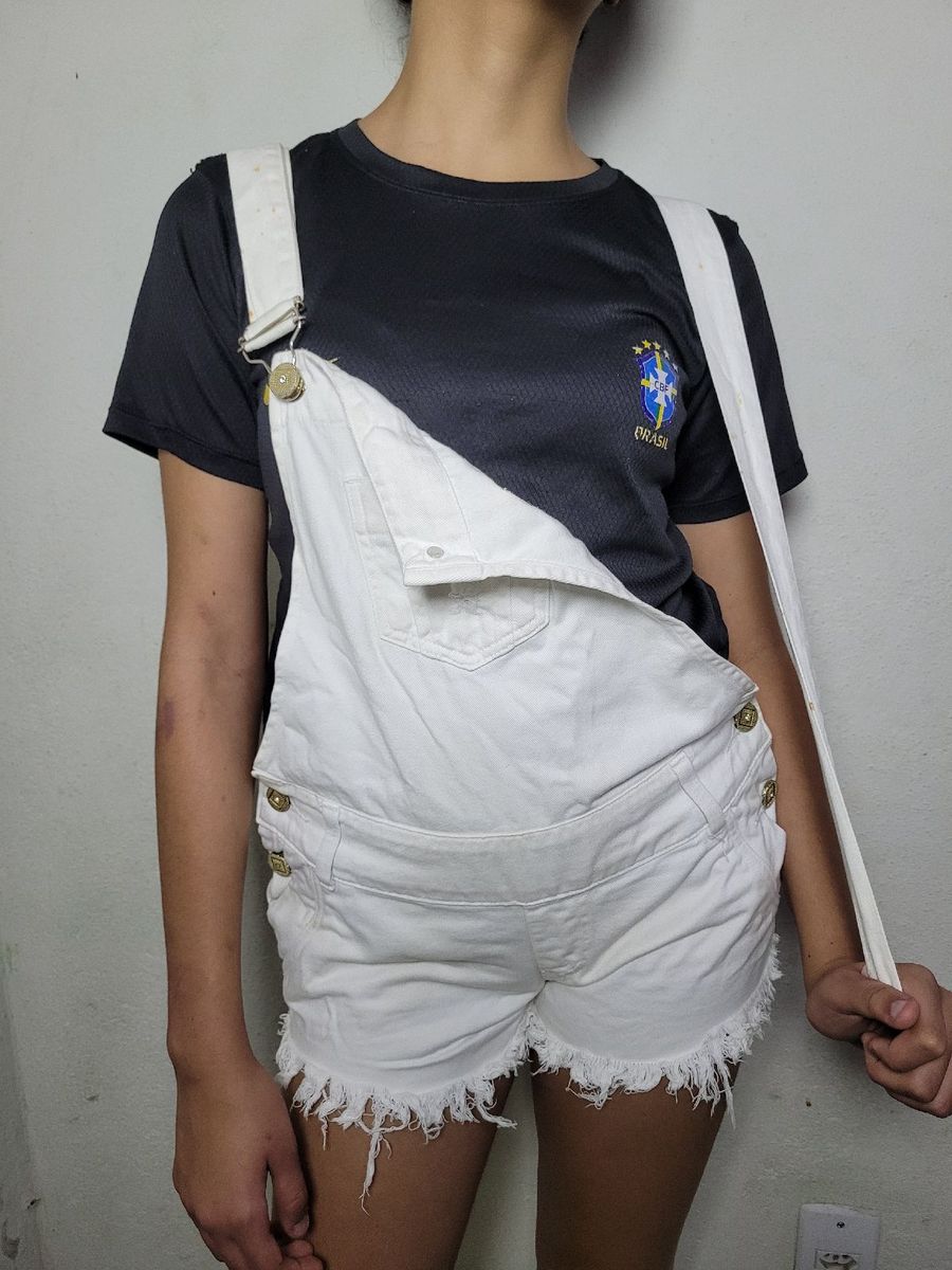 Jardineira salopete jeans branca shorts suspens rio R 169.99