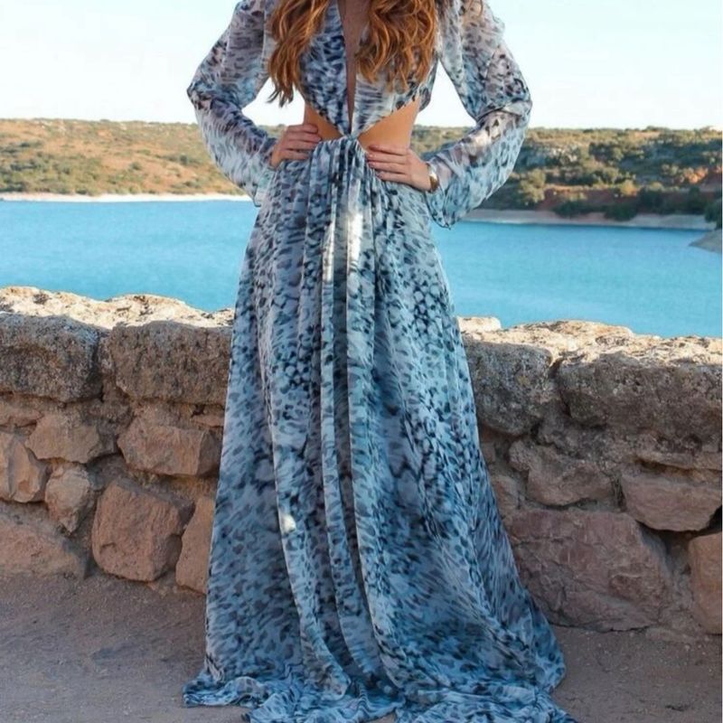 Vestido clearance fluido madrinha, Vestido Longo Madrinha Fluido com Mangas e Recortes Vestido clearance