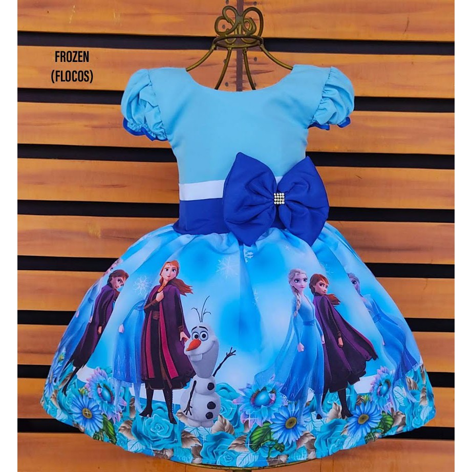 Vestido Tem tico Infantil Festa Elsa Frozen flocos