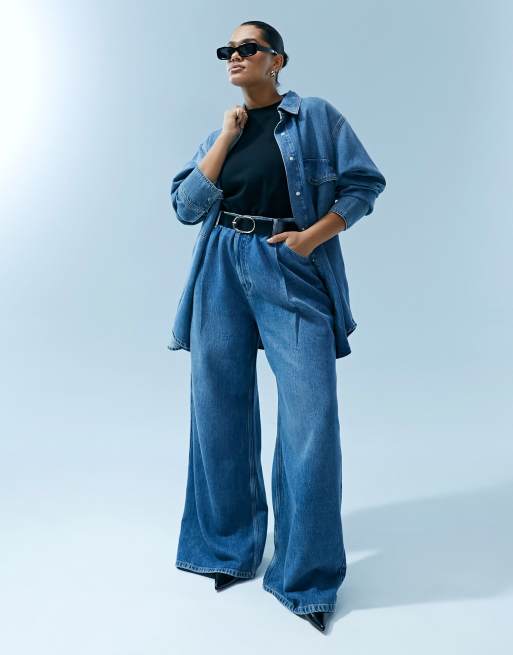 ASOS DESIGN Curve Premium jeans van co ord set met plooien in