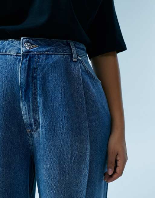 ASOS DESIGN Premium jeans met plooien in blauw met wassing deel