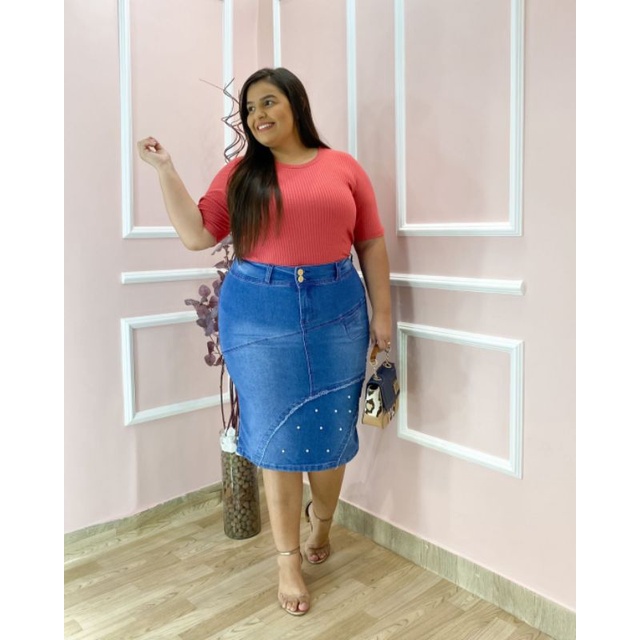 Saias jeans plus clearance size evangelica, Saia Jeans Plus Size Secret ria C s Largo Dyork Moda Evang lica clearance