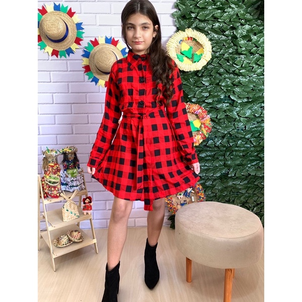Vestido chemise xadrez infantil tamanho 4 6 e 8