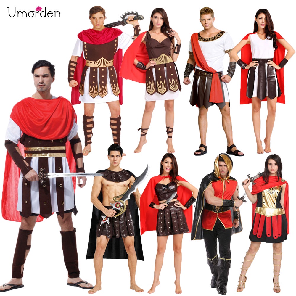 Roupa clearance dos gregos, Halloween Traje Do Partido Carnaval Adulto Casal Romano Armadura Grego Soldado Guerreiro Trajes Gladiador Vestidos Para Mulheres Dos Homens clearance