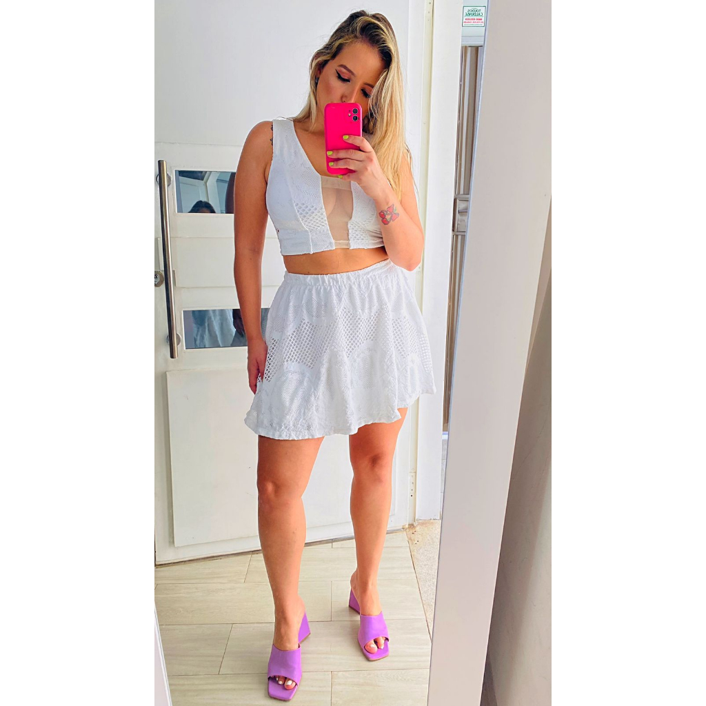 Conjunto cropped e saia branco lese festa casamento anivers rio