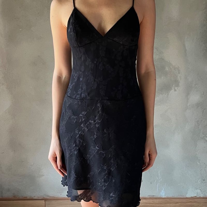 Vestido Curto Estilo Camisola Preto com Forro Vintage