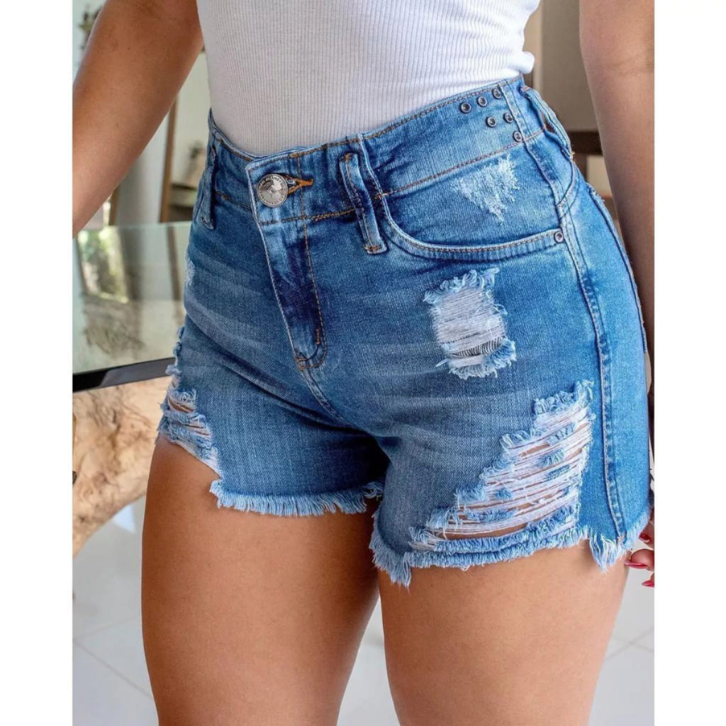 Short Jeans Rasgado 36 ao 46 com Lycra Cintura Alta Feminino