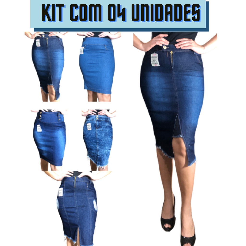 Kit 4 Saia Jeans Lycra Midi Moda Evang lica Atacado Shopee Brasil