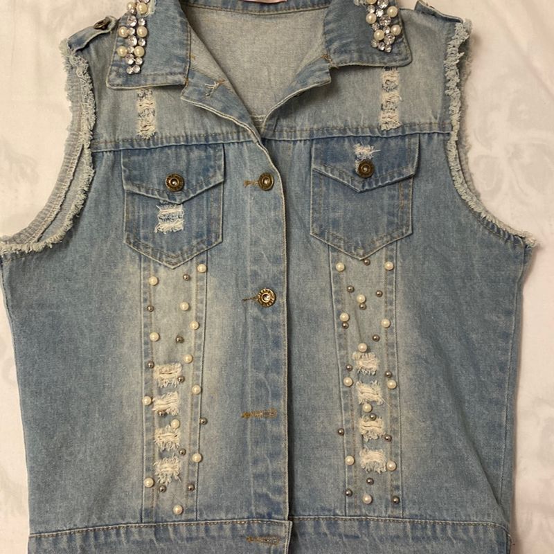 Colete Jeans com P rolas Colete Feminino Usado 20054332 enjoei