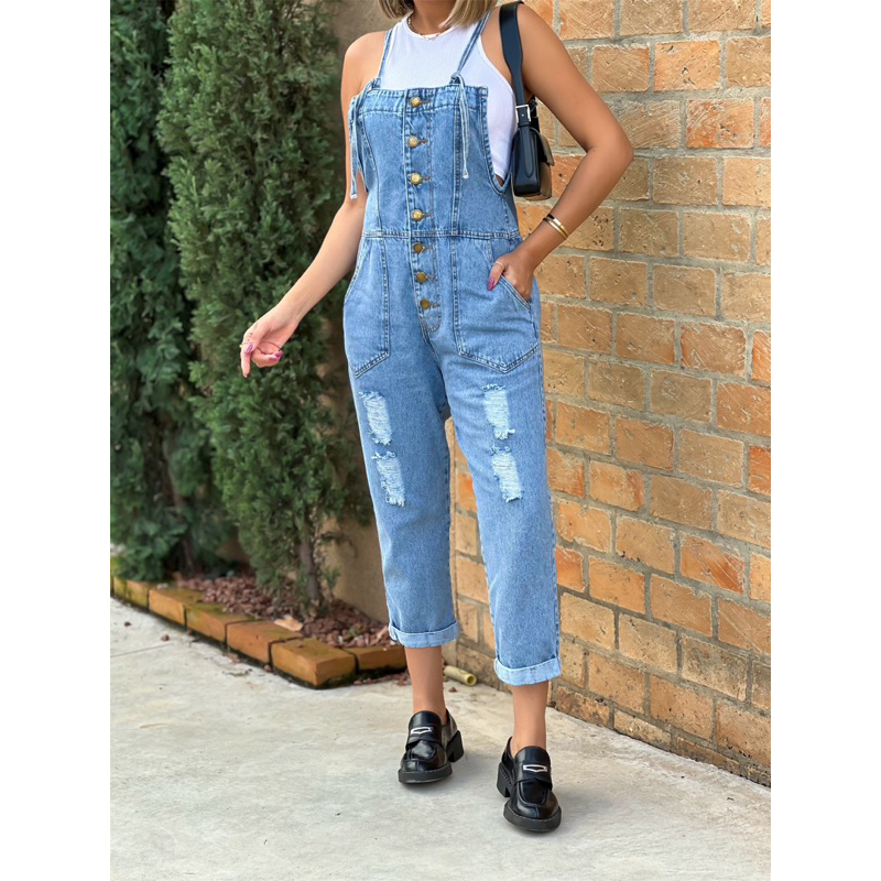 Jardineira Jeans Al a Lacinho Detalhe Rasgos DONDOCA Dondoca