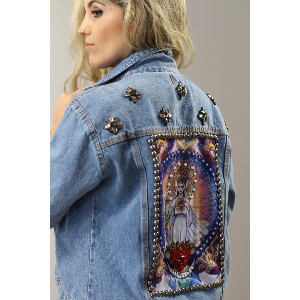 Jaqueta Jeans Customizada Caveira Mexicana em Paet MQJ