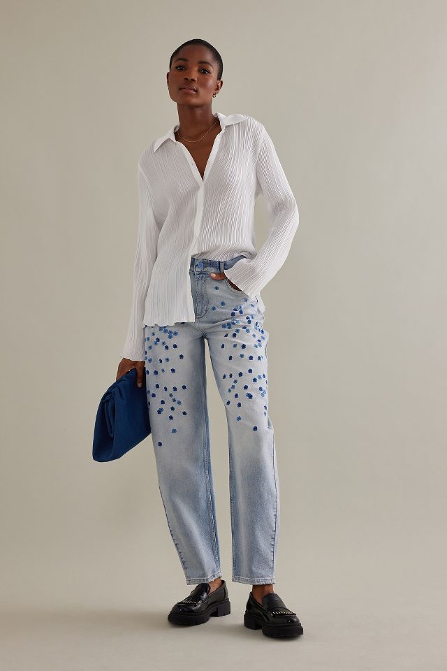 Fabienne Chapot Blake High Waisted Floral Embroidered Mom Jeans