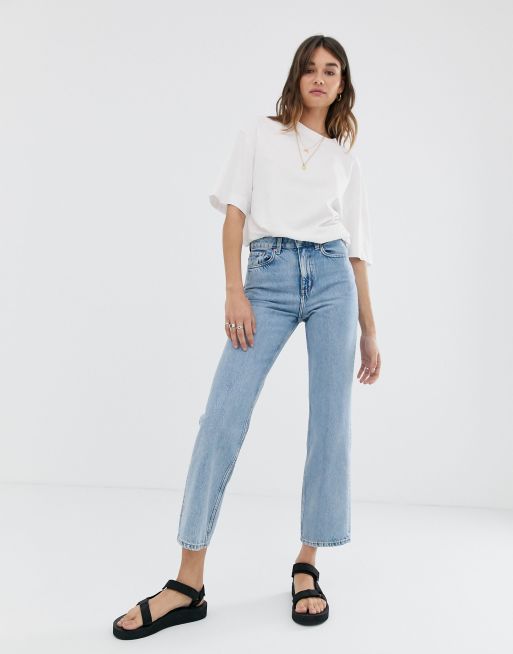 Weekday Voyage Katoenen jeans met rechte pijpen in lichtblauw MBLUE