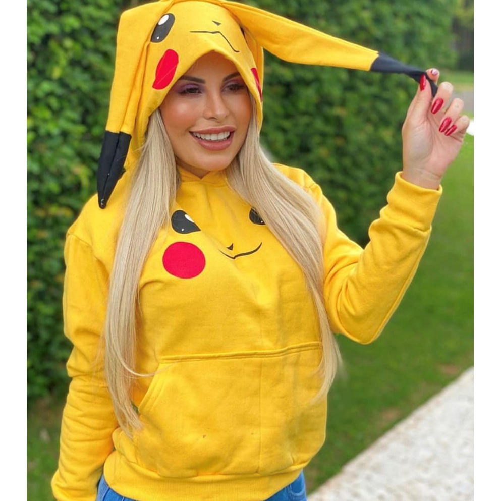 Blusa Moletom Pikachu Com Capuz De Orelhas Unissex Anime