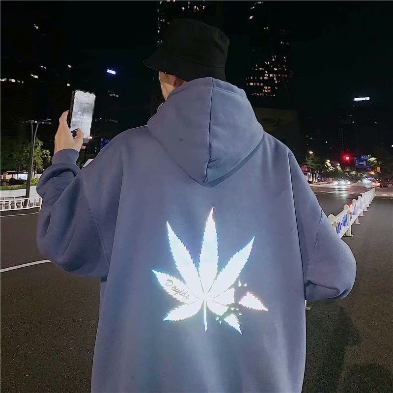 Moletom Unissex Com Capuz Design Refletivo 628 De Inverno Moleton Masculino Design folha de Carvalho Moda Masculina