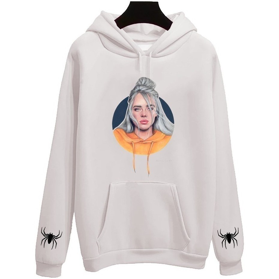 Blusa Moletom Feminino Billie Eilish Capuz em Algod o Branco