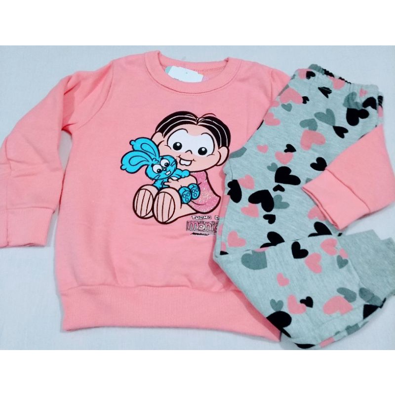 Conjunto de Moletom Infantil Brandili Flanelado Menina Tam 2 3 6 PROMO O