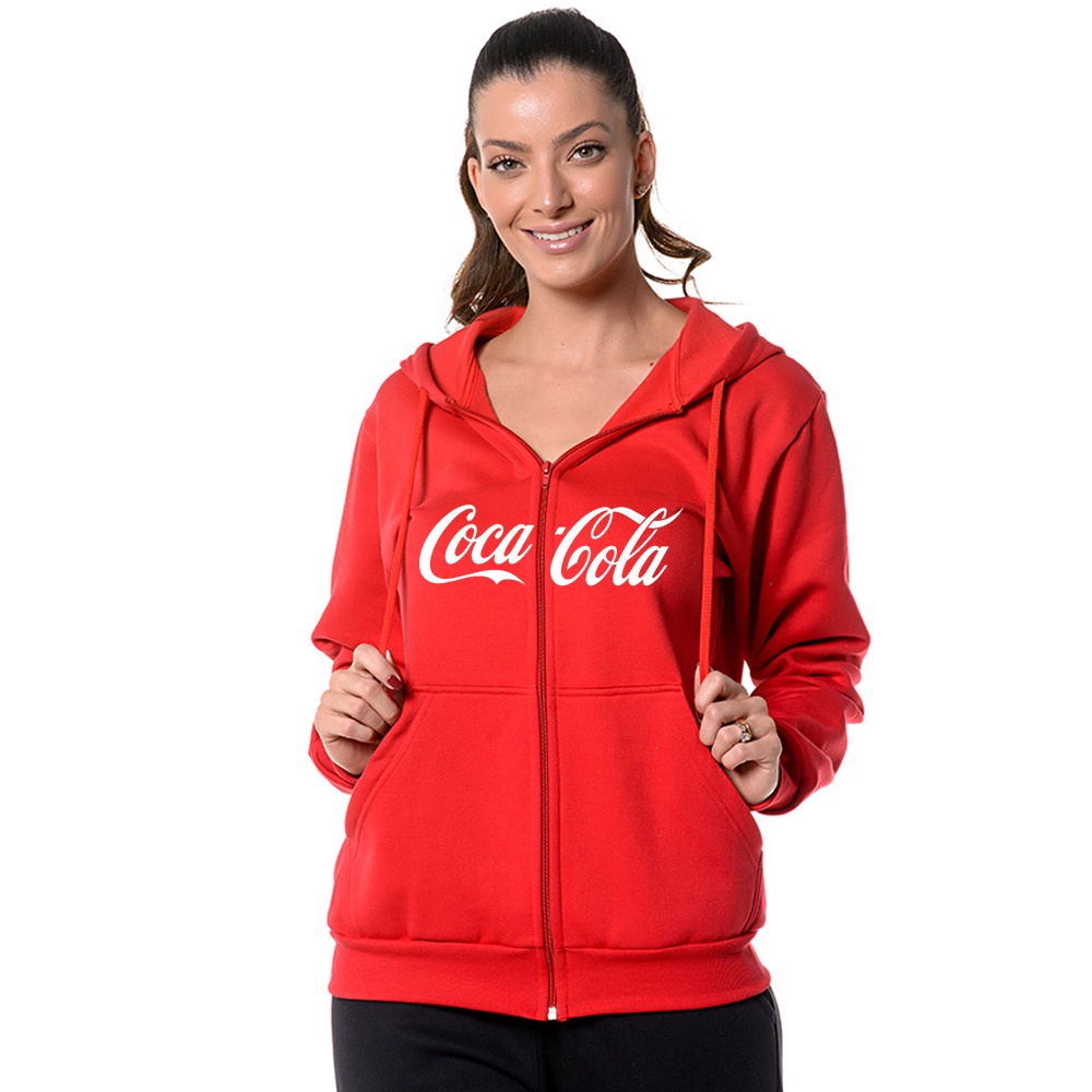 Casaco Feminino Moletom Coca Cola Com Bolso Canguru Brech