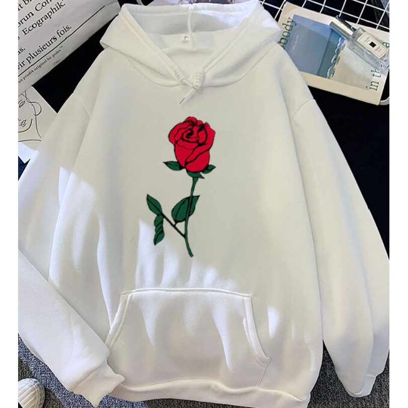 Casaco moletom c capuz flor rosa vermelha blus o de inverno