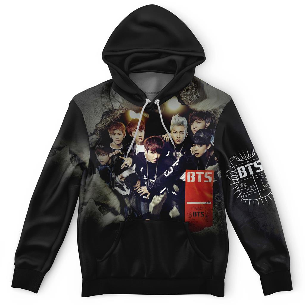 Moletom clearance canguru bts, Moletom Feminino BTS Army Artrock com Capuz Back in Black clearance