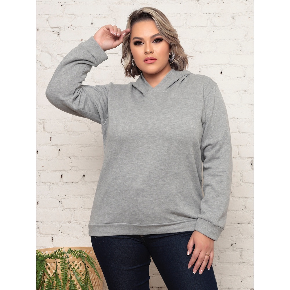 Blusa Moletom Feminina Plus com Capuz 1961 Cinza Shopee Brasil