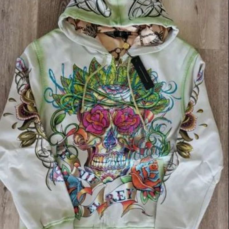 Christian Audigier Ed Hardy Men Vintage Hoodie Skull Hand Rose