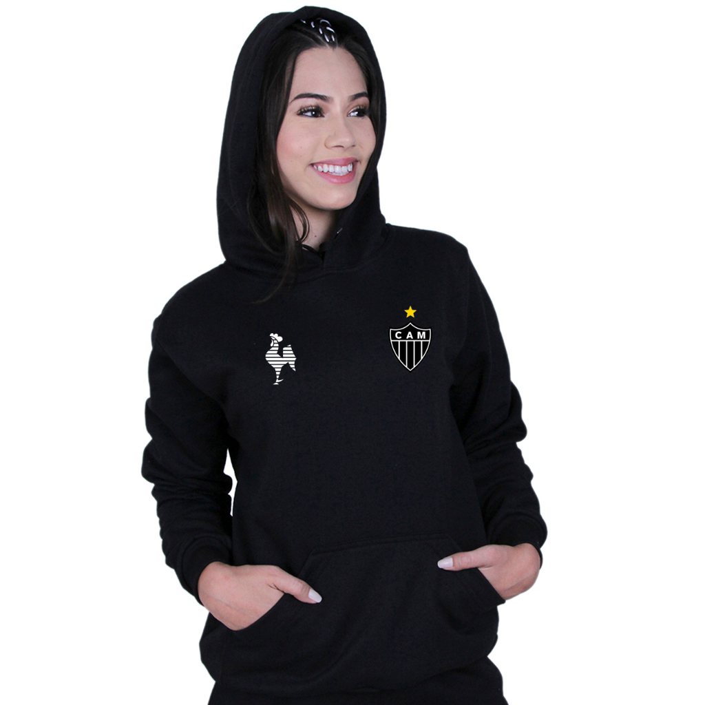 Moletom do galo clearance feminino, Moletom Atl tico Mineiro Feminino Com Capuz Mesclado Preto clearance
