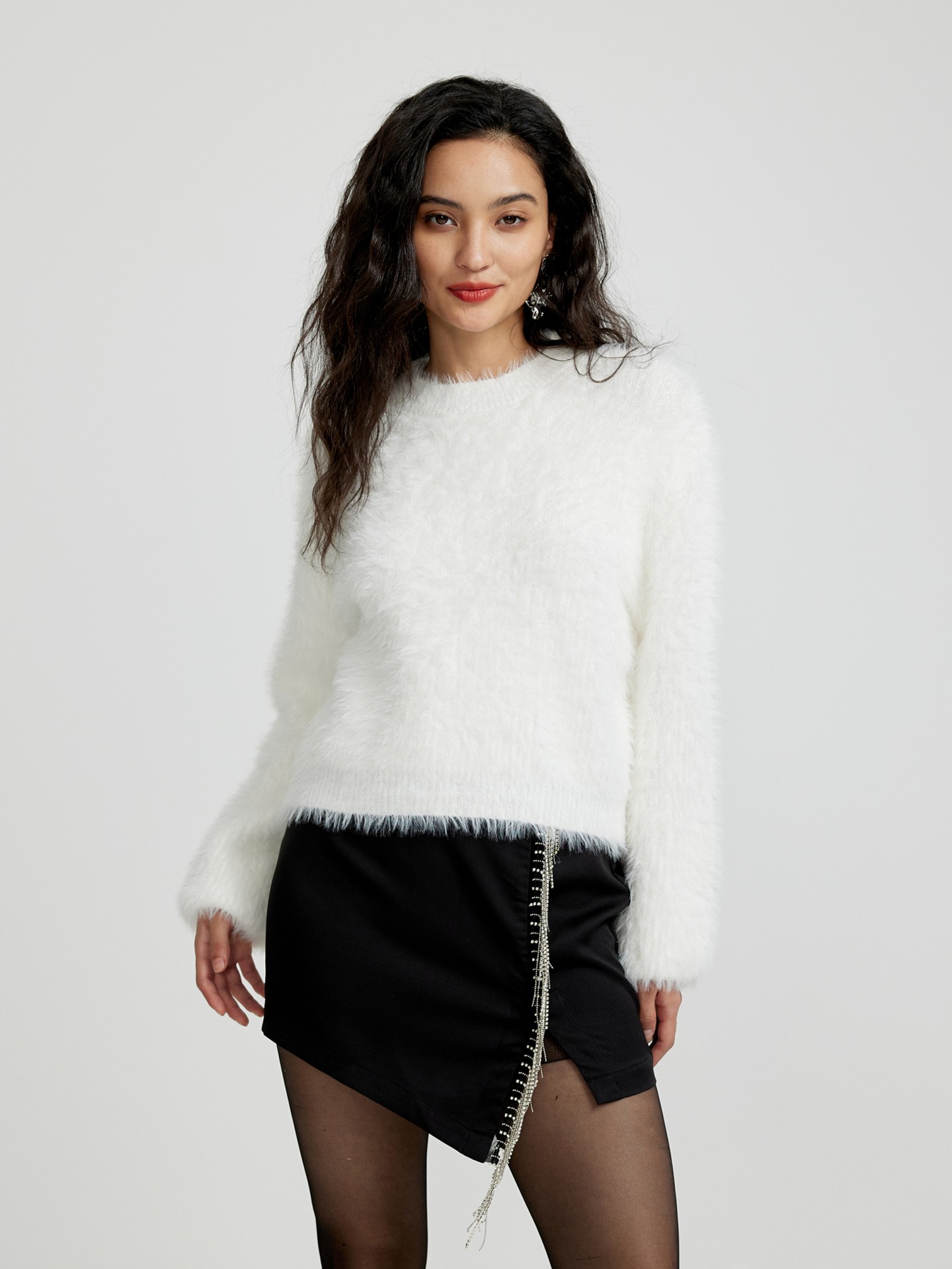 Sueter clearance de pelo, Hermosa mujer joven en un su ter con pelo largo sentado en la clearance