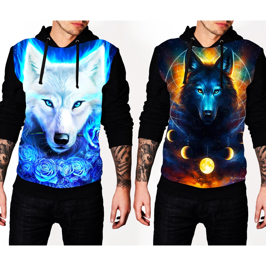Sublimação clearance em moletom, Kit 2 Moletom Lobo Woof Estampado Sublima o Moleton Canguru Blusa De Frio clearance