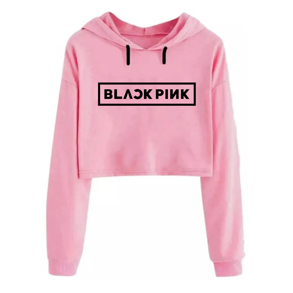 Blusa Moletom Cropped BlackPink Kpop Army Feminino
