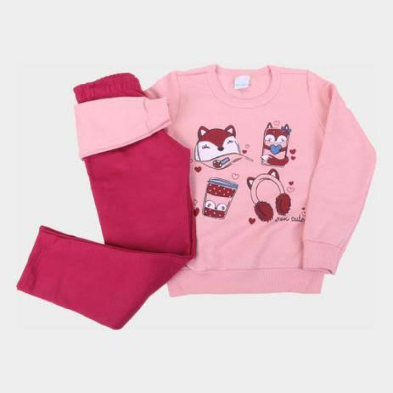 CONJUNTO INFANTIL MANGA LONGA COM CAPUZ MOLETOM FEMININO MALWEE