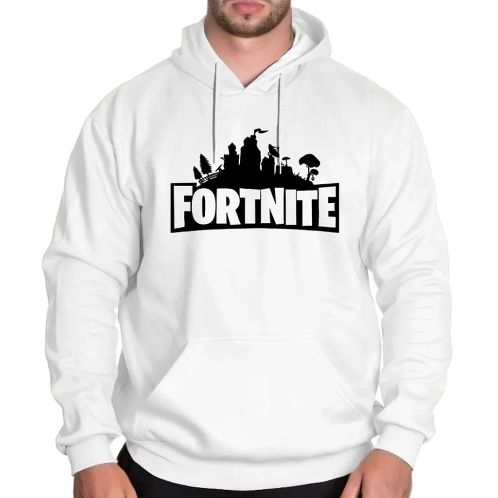 Blusa De Frio Moletom Fortnite Infantil Juvenil Branco Branco
