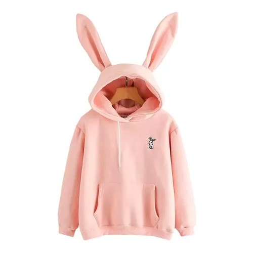 Moletom Feminino De Manga Comprida Com Capuz Orelhas De Coelho