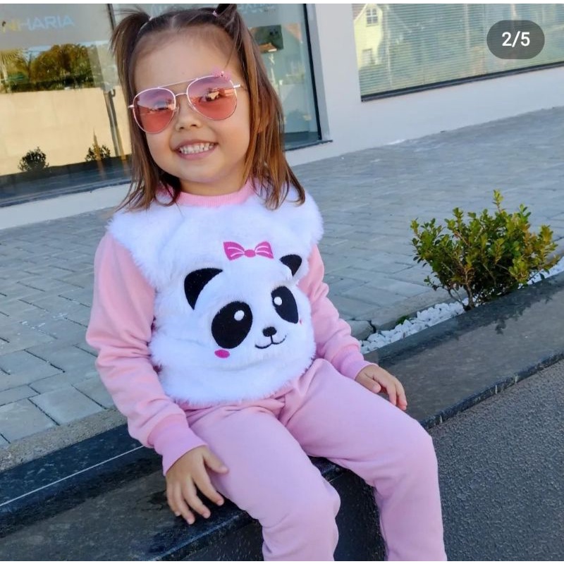 Conjunto Moletom Panda Infantil Frio Inverno tem pelucia na frente lan amento 2022 Mini Diva Moda Bloguerinha