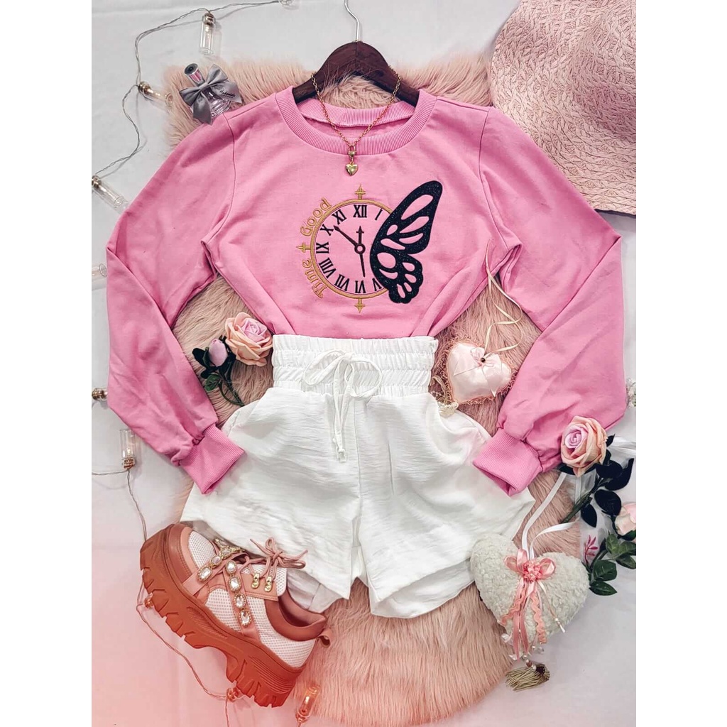 MOLETOM FEMININO PELUCIADO BORDADO TEMPO BOM ROSA Shopee Brasil