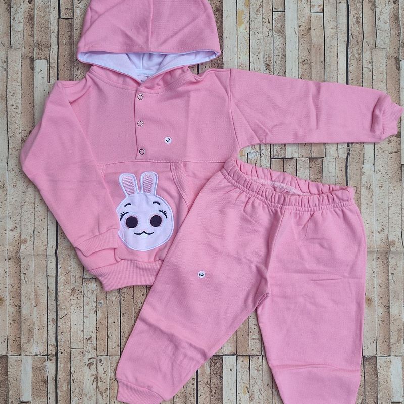Conjunto Moletom Infantil com Capuz Forrado Feminino . Tam 2 Anos