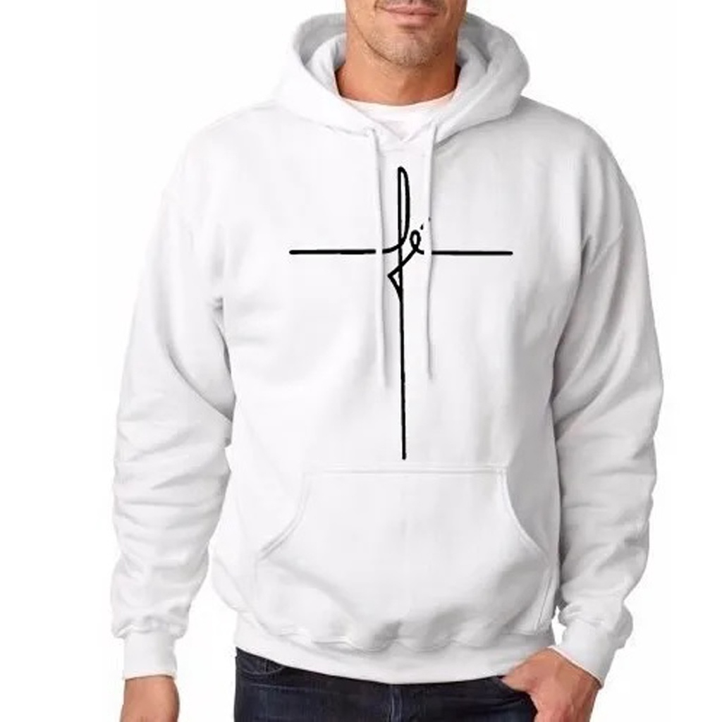 Blusa De Frio Moletom F Masculino Com Bolso E Capuz Crist o Branco
