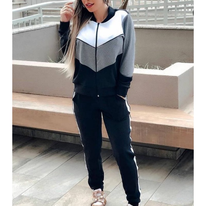 Conjunto moleton Feminino Malha Crepe Agasalho Manga Longa Com