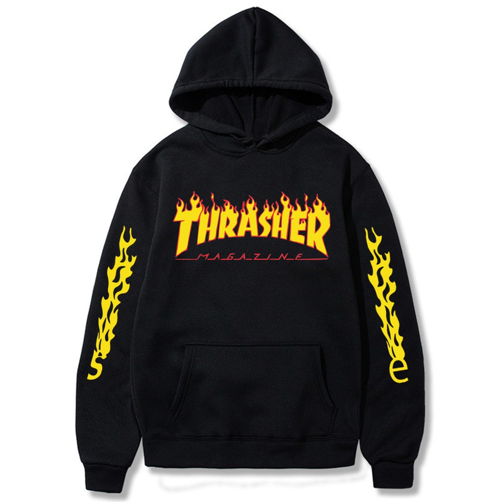 Moletom clearance preto tumblr, Moletom Canguru Algod o Unissex Thrasher Moda Fogo Skate Tumblr clearance