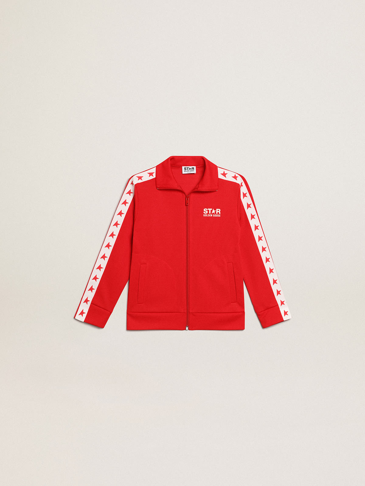 Moletom vermelho com z per listras brancas e estrelas vermelhas
