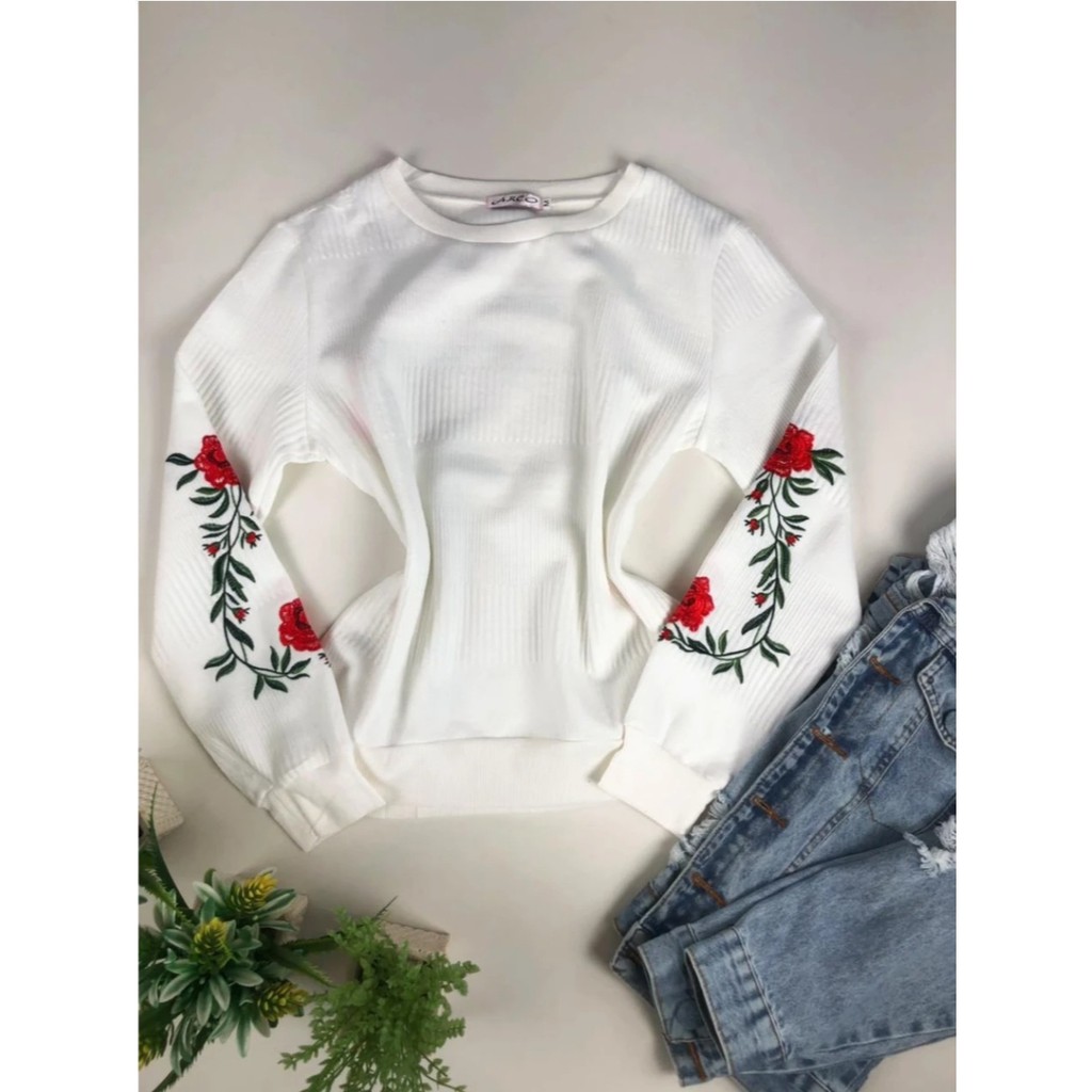 Blusa De Frio Moletom Inverno Feminino Flor Manga