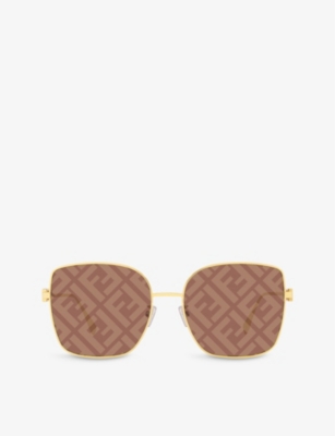 Fendi clearance sunglasses selfridges, FENDI FE40013U rectangle shape logo lens metal sunglasses clearance