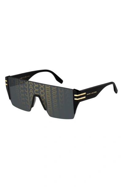 Marc Jacobs Mirrored Graphic Acetate Shield Sunglasses In Black